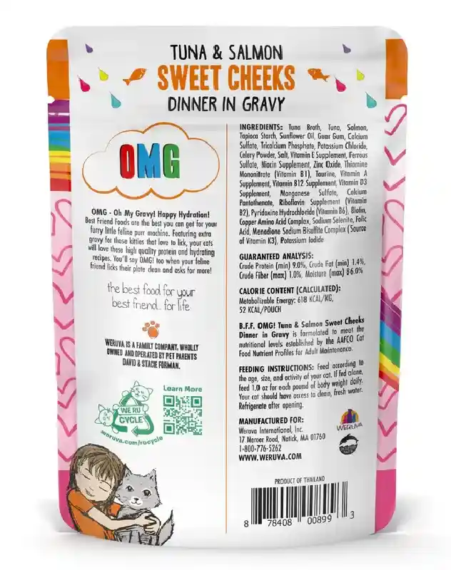 Is your kitty the sweetest? Then show them how much you love them with Tuna & Salmon Sweet Cheeks. This high-moisture, protein packed pouch will keep your kitty (and their tummy) happy!