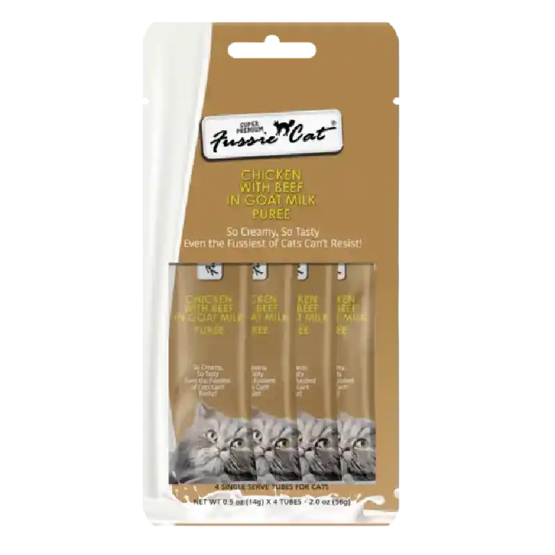 Fussie Cat Chicken and Beef in Goat Milk Puree 4 pack