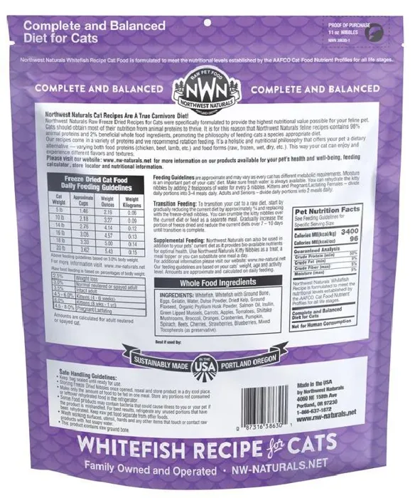 Northwest Naturals - Freeze-Dried Raw Diet for Cats Whitefish Recipe 11oz
