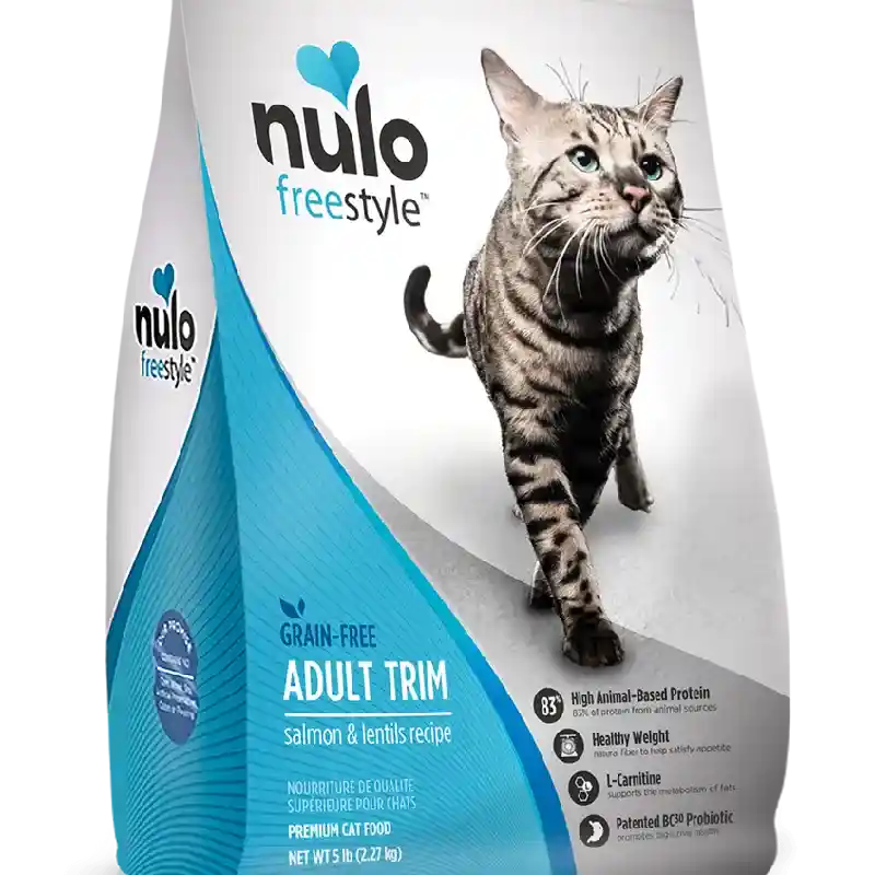 Staying fit and trim can be more challenging for some cats. That's why we've made our Nulo FreeStyle™ Adult Trim formula. Our grain-free recipe of salmon & lentils provides the protein and amino acids cats need, but includes more fiber and less fat calories than our other recipes. And the addition of L-Carnitine supports the metabolism of fats. FreeStyle’s formulas are grain-free, using ingredients like sweet potatoes and chickpeas as low-glycemic, whole-food carbohydrate sources.