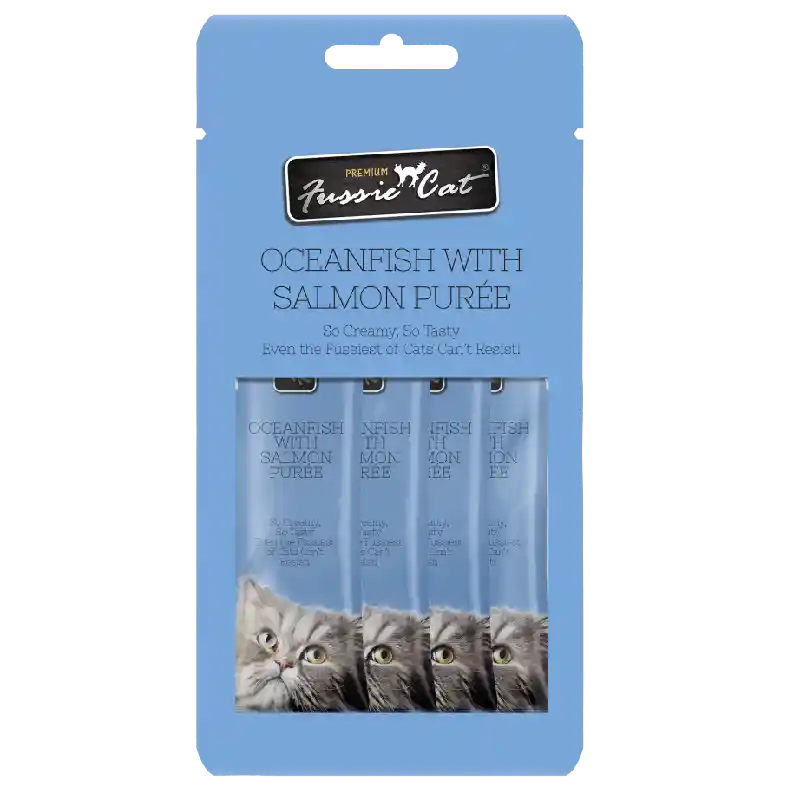 Fussie Cat Oceanfish with Salmon Puree, Pack of 4, 0.5-oz tubes