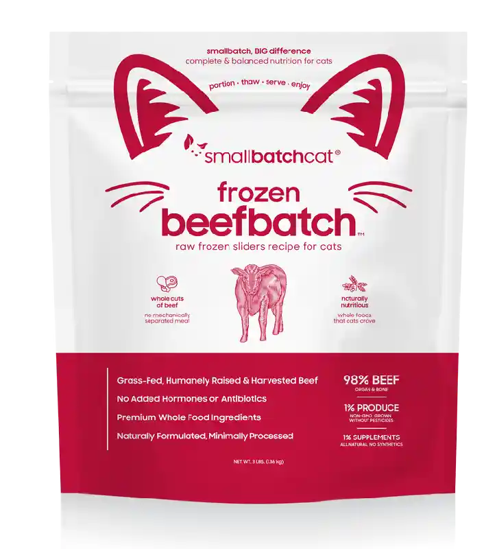 Complete and Balanced – Smallbatch Cat Beef Recipe Sliders is formulated to meet the nutritional levels established by the AAFCO Cat Food Nutrient Profiles for all life stages.