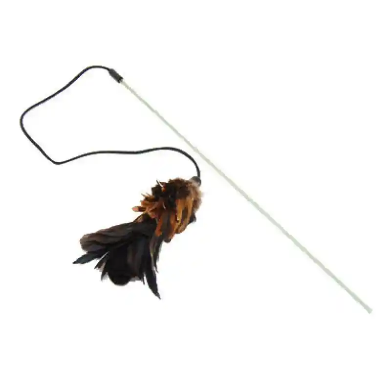 Your cat will love this natural feather cat wand toy. The PURRfectâ„¢ Pouncer by Vee Enterprizes has an 18" rod and a 20" leather lace making for lots of room to run, jump, and pounce during playtime.