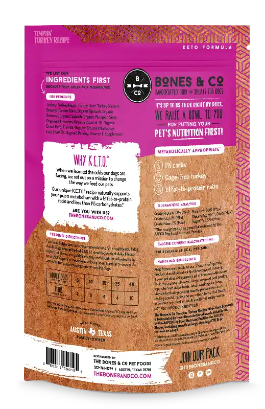 Bones & Co Frozen Temptin' Turkey Minis Keto Formula 3-lb.