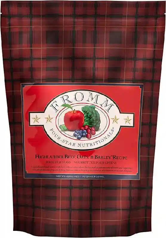 Fromm Four-Star Highlander Beef, Oats, ‘n Barley™ Recipe Food for Dogs is a delicious Scottish-inspired entrée of beef, whole oats, whole barley, and an assortment of fruits and vegetables. This distinctive blend is specially prepared to ensure consistency, quality, and superior taste in each and every bowl. Highlander Beef, Oats, ’n Barley™ Recipe provides complete and balanced nutrition for dogs of all ages and can be alternated with other Fromm Four-Star recipes.