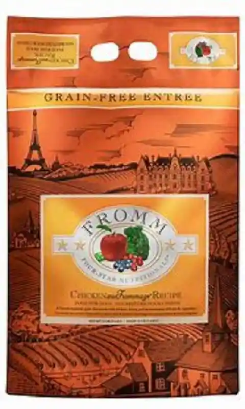 Fromm Four Star Chicken au Frommage® Recipe Food for Dogs is a savory, grain-free entrée with chicken, cheese, and an assortment of fruits & vegetables. This distinctive blend is specially prepared to ensure consistency, quality, and superior taste in each and every bowl. Chicken au Frommage® Recipe provides complete and balanced nutrition for dogs of all ages and can be alternated with other Fromm Four-Star recipes.