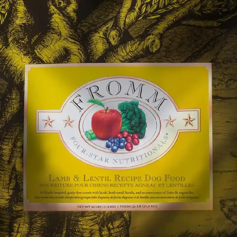 Fromm Four-Star Lamb & Lentil Recipe for Dogs is a delectable grain-free blend of lamb and lentils combined with fresh fruits and vegetables. This artisan blend is prepared in small batches, ensuring consistency, quality, and superior taste in each and every bowl. Lamb & Lentil Recipe provides complete and balanced nutrition for dogs of all ages and can be fed in rotation with other Fromm Four-Star varieties.