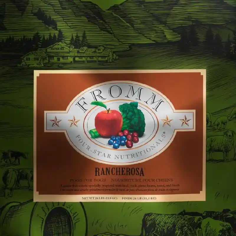 Fromm Four-Star Rancherosa® Food for Dogs is a satisfying grain-free blend of beef, pork, trout, lamb, and an assortment of fruits and vegetables, inspired by life on the range. This distinctive blend is specially prepared to ensure consistency, quality, and superior taste in each and every bowl. Rancherosa® provides complete and balanced nutrition for dogs of all ages and can be alternated with other Fromm Four-Star recipes.