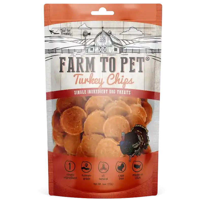 Our irresistibly crunchy turkey chips are loved by all beads and sizes! Your four-legged friends won’t be able to keep their paws off - thousands of other dogs agree! Feed the whole pack with Farm to Pet Treats!