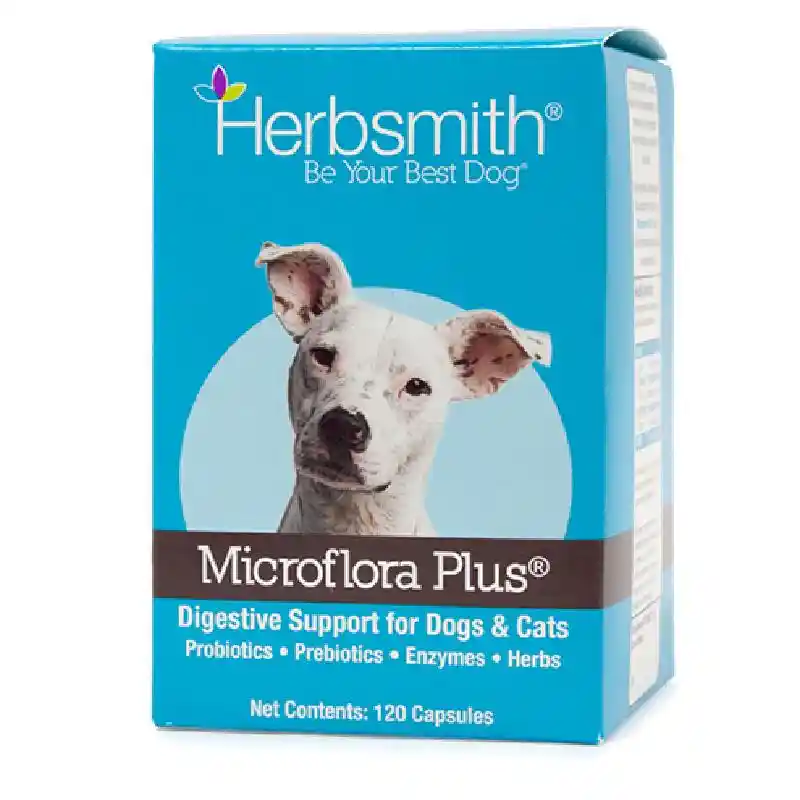 Herbsmith Microflora Plus – Dog Digestion Aid –Probiotics and Digestive Enzymes for Dogs – Prebiotic for Dogs – 120 Capsules