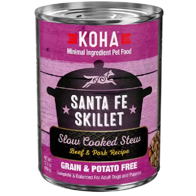 KOHA Santa Fe Skillet Stew Your dog will feel like she's out on the trail sitting under the stars eating this yummy slow-cooked beef and pork stew.