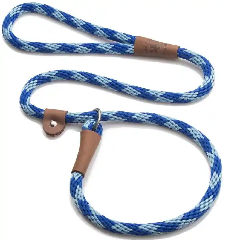 Hand Crafted in the USA - this combination leash and collar in one is great for training! Made of waterproof, colorfast, durable multi-filament polypropylene solid core roping features all brass hardware and oil tanned leather splices. Unique leash and collar in one is designed for easy correction while walking, exercising or training. Slip Leads have an adjustable oil tanned leather slide to prevent lead from slipping off. Soft on the hands with its “Broken in Feel” right from the start.