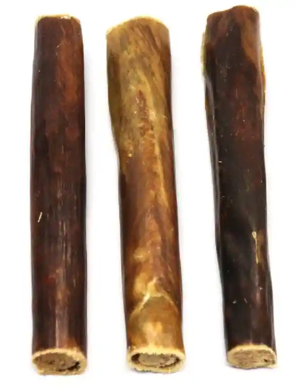 This is a long lasting chew for small breeds, and a moderately lasting chew for medium sized dogs. This chew has a much softer texture compared to a bully stick, so it's good for senior dogs or dogs who are missing a lot of teeth.