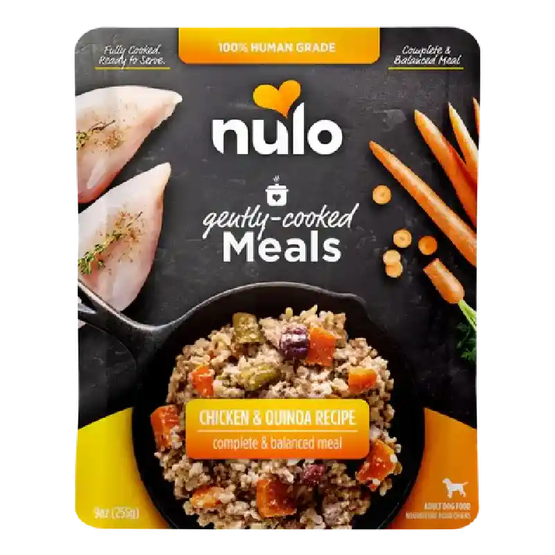 Home-cooking a complete and balanced meal for your dog can be tricky. With Nulo’s Gently-Cooked Meals, you can give your dog that homestyle taste, in a completely ready-to-serve, no-mess pouch. Made by gently-cooking protein-rich chicken with diced green beans, apples, sweet potatoes and quinoa in a savory bone broth, this minimally processed meal provides complete and balanced nutrition with ingredients you can recognize. Simply open, serve and let the tail-wagging begin!
