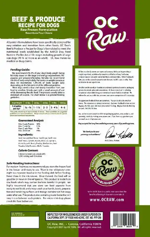 90% Meat, Bone, and Organ 10% Fruits, Vegetables and Supplements.