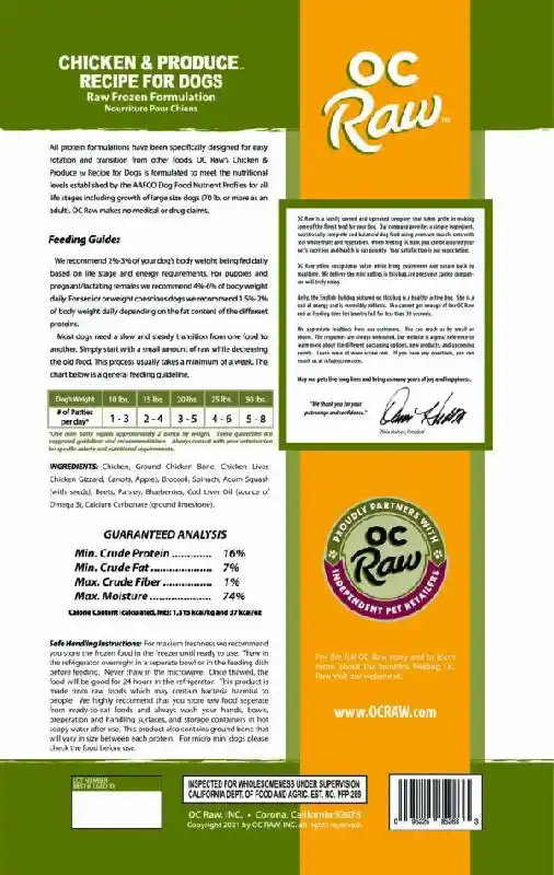 OC Raw - Chicken & Produce Mini Patties - 4-lb
