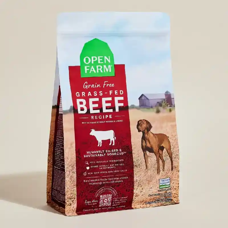 This protein-packed kibble is a terrific source of nutrition, thanks to a blend of humanely raised 100% grass-fed beef and non-GMO produce like pumpkin, sweet potato, and apple.