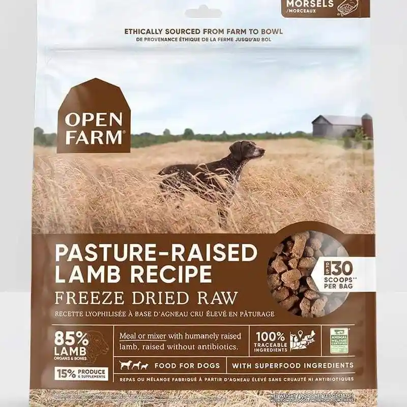 Easy to serve and easy to please. This high protein topper or complete meal is packed with humanely and pasture-raised lamb. For added nutrition, Open Farm includes functional ingredients like locally sourced leafy greens, squash and pumpkin seeds, superfoods like coconut oil, and antioxidants like blueberries.