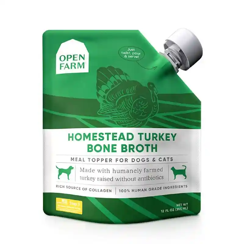 Made with real turkey bones and is slow-cooked to extract nutrients. Good for digestion, joint health, and skin and coat health.