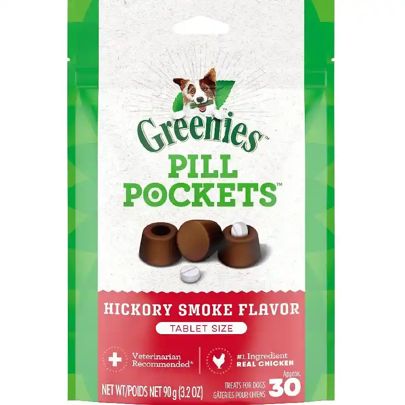 GREENIES PILL POCKETS for Dogs Tablet Size Natural Soft Dog Treats, Hickory Smoke Flavor, 3.2 oz. Pack (30 Treats)