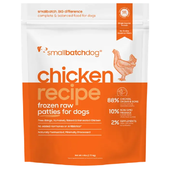 Single-source protein, complete raw diets for dogs featuring high meat, organ and bone recipes. Unlike other brands, smallbatch uses exclusively humanely raised, whole cuts of meat and naturally derived nutrients from whole foods. Portioned in convenient