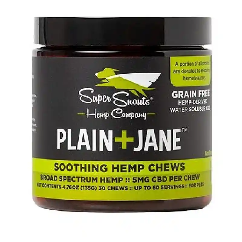 PLAIN+JANE is a full spectrum, phyto- cannabinoid rich, water soluble, functional soft hemp chew formulated by a veterinarian.