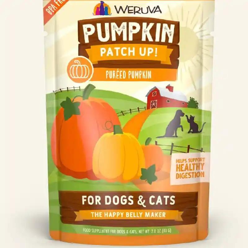 A healthy tummy is a happy tummy! Weruva's pumpkin supplement is a great source of healthy soluble and insoluble fibers to help support your cat's or dog's digestive system. We combine the healthy digestive benefits of pumpkin in an easy to serve pouch.