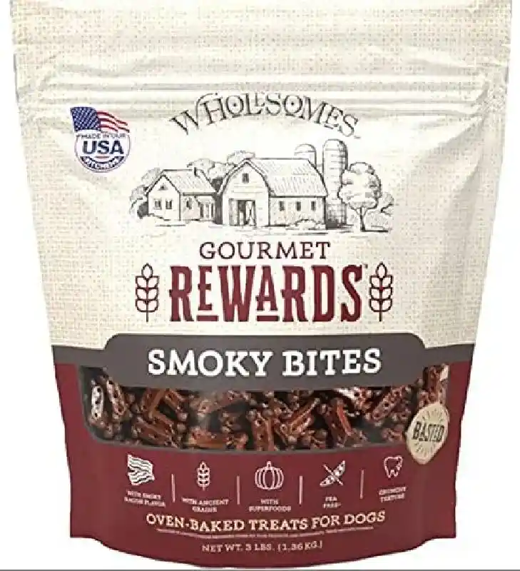 Wholesomes Smoky Bites Bacon Flavor Dog Treats are a great way to reward your pup while providing a delicious supplement to his diet. These treats are made with a smoky, bacon flavor dogs love and have a crunchy texture that helps remove plaque and tartar to support healthy gums. And you’ll be happy to know that every biscuit is naturally preserved and fortified with vitamins and minerals for an added boost of benefits!