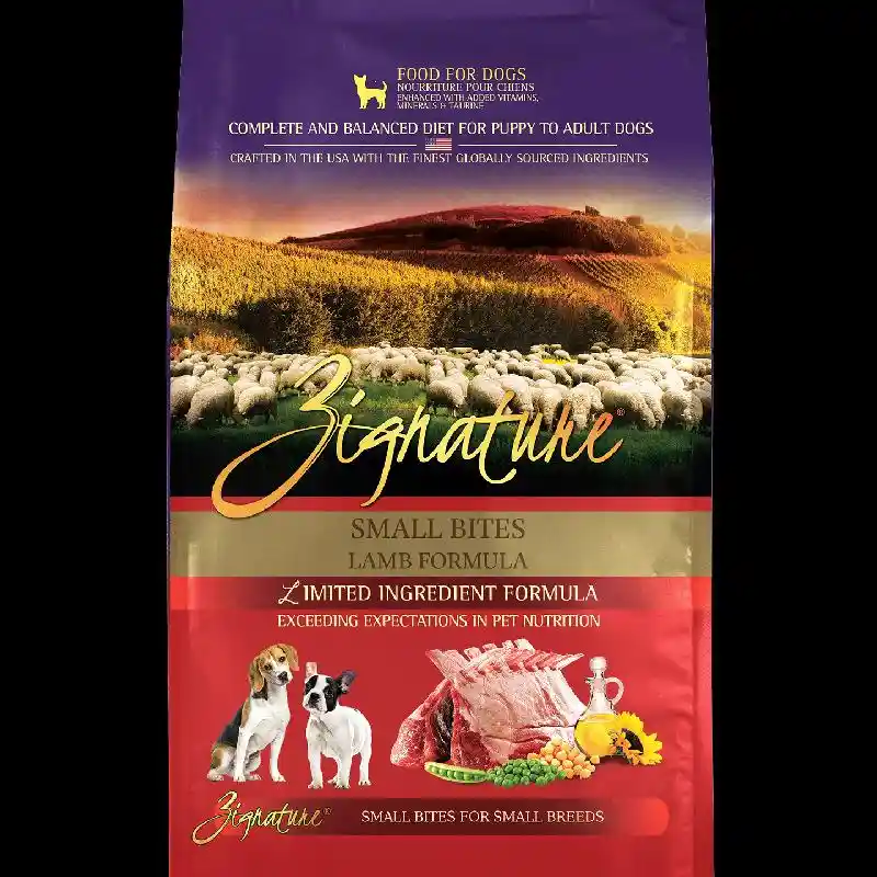 For our smaller pups, try Zignature Small Bites! Zignature Small Bites follows our same limited-ingredient, meat-first philosophy—just in smaller sized bites. Our Lamb Formula Small Bites are formulated with high-quality, low-fat Lamb protein aimed to help your dog build strong muscles while maintaining optimal weight. Then, we pair that with other healthy and wholesome ingredients to round out your pup’s overall diet.