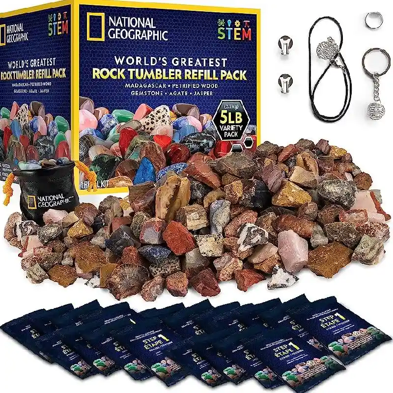 NATIONAL GEOGRAPHIC Rock Tumbler Refill Kit - 5 lb. Mix of Rocks for Tumbling and Rough Gemstones - Rock Tumbler Supplies include Rock Tumbler Grit and Polish Refill, and Unpolished Rocks