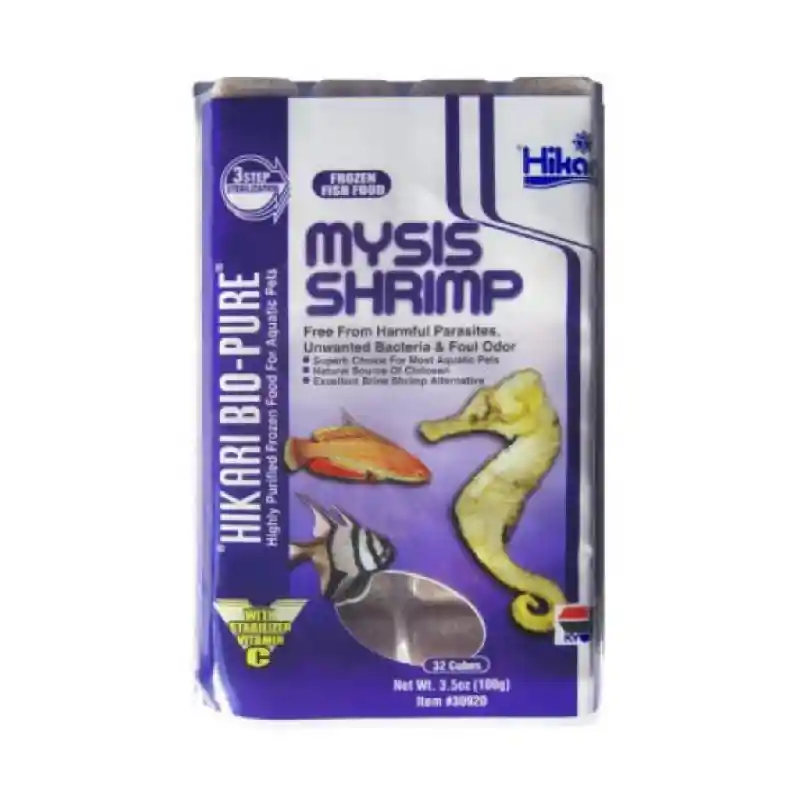 ®Hikari’s extensive, multi-step sterilization process assures unequalled product quality. Free from harmful parasites, unwanted bacteria and foul odor, Bio-Pure® frozen foods are another example of ®Hikari’s product quality commitment. These whole mysis shrimp are naturally high in amino acids which improves growth and chitosan which supports immune system health. This brackish water species makes it an excellent choice for both freshwater and marine pets, especially sea horses. Gut loaded with Bio-Encapsulated multivitamins these shrimp are a great addition to your pets’ diet. Try our maximum nutrition with minimum mess formula for success. When you want the best for your aquatic pets, look to ®Hikari!