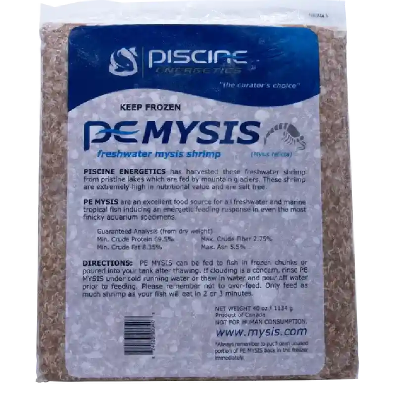 PE frozen mysis encourage exceptional appetite and growth - even in finicky aquarium fish! PE Mysis diluviana boast naturally higher fatty acid profiles and Omega-3's than enriched brine shrimp. PE Mysis are harvested live from pristine glacial lakes in Canada, flash frozen in premium condition with no binding agents or fillers. PE Mysis are an excellent food source for all freshwater and marine tropical fish that induces an energetic feeding response in aquarium fish.