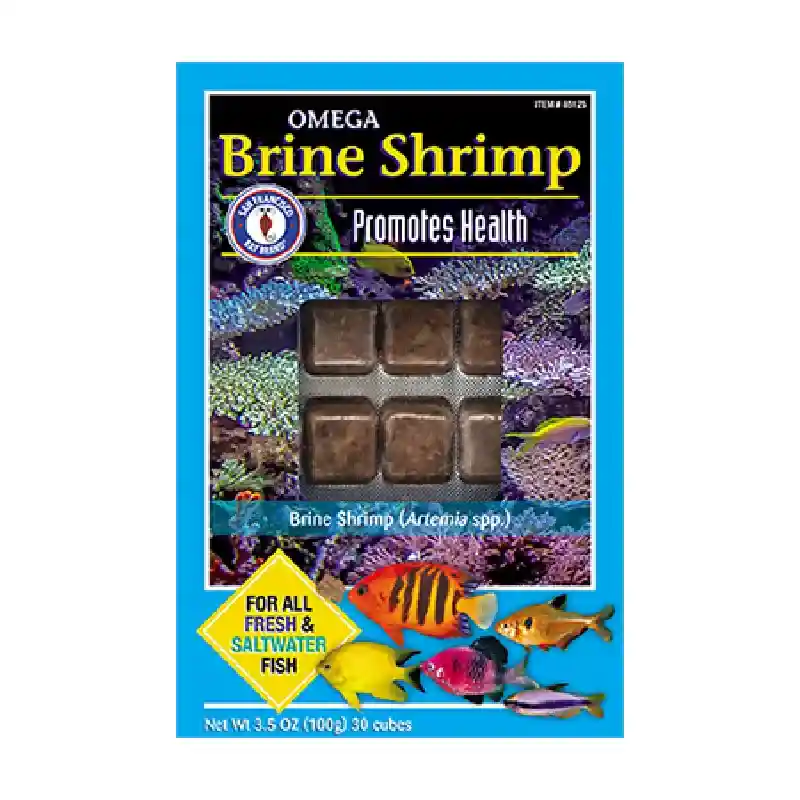 San Francisco Bay Brand Frozen Omega Brine Shrimp have been gut-loaded with a lipid formula high in Omega-3 polyunsatured fatty acids (PUFA’s) in holding tanks prior to freezing. PUFA’s have been proven to be essential nutrients for a wide variety of fish for maintaining their immune regulatory system, cell membrane fluidity & integrity and various other regulatory functions. Consumption of Omega Brine Shrimp will help provide fish with these PUFA’s.